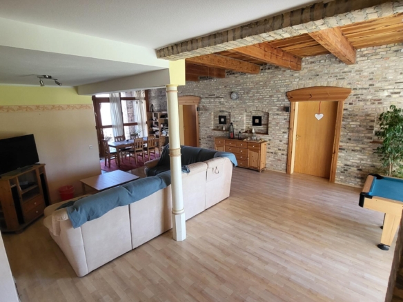 Dieser sanierte Resthof wird seit mehr als 20 Jahren als Jugendhilfeeinrichtung betrieben. In den letzten Jahren sind eine Außenwohngruppe und eine Gastronomie hinzu gekommen. Die Immobilien können auch mit wenig Aufwand für andere Zwecke verwendet werden. Ein Senioren-Wohnheim zum Beispiel wäre durch die Barrierefreiheit und den vorhandenen Brandschutz auch eine Nutzungsmöglichkeit.